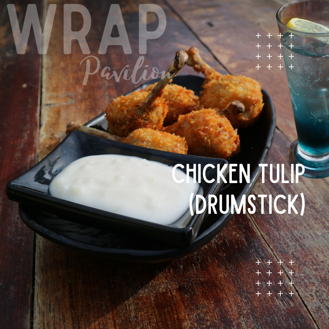 A fried chicken wing processed like a "tulip". Makes it nice and easier to eat