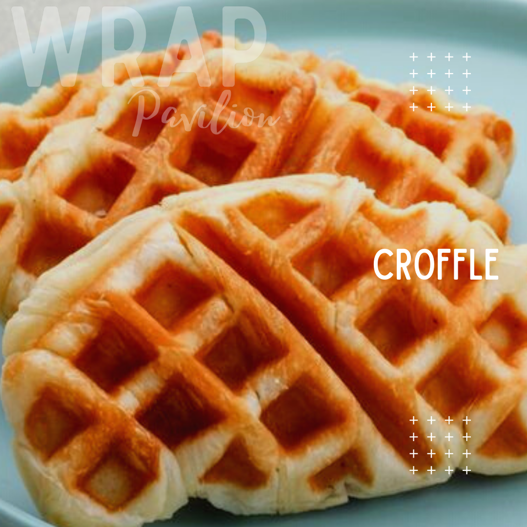 Croissant dough on a waffle pan with topping option of Caramel, Chocolate, Strawberry or Cheese. Available option